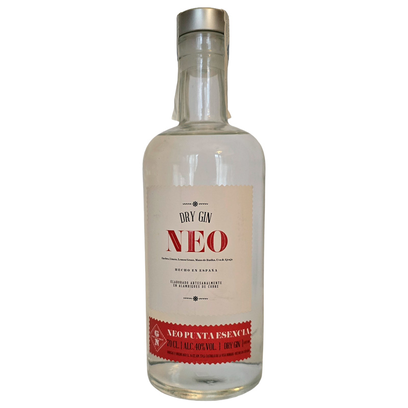 Dry Gin NEO se distingue por un proceso de elaboración artesanal, que utiliza una destilación en alambique de cobre. La base es un alcohol neutro ( que suele provenir de cereales ) que se infunde con una selección de botánicos. El proceso de destilación en alambiques de cobre, implica calentar el alcohol base junto con los botánicos, permitiendo que los vapores arrastren los aceites esenciales y aromas de los ingredientes, posteriormente, este vapor se condensa para obtener una ginebra transparente de alta graduación alcohólica, que finalmente se diluye con agua para alcanzar su volumen final.
